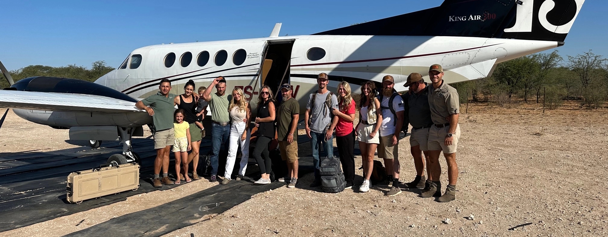 There you’ll be introduced to your pilot and crew, who will fly you directly to Kalahari Outfitters.